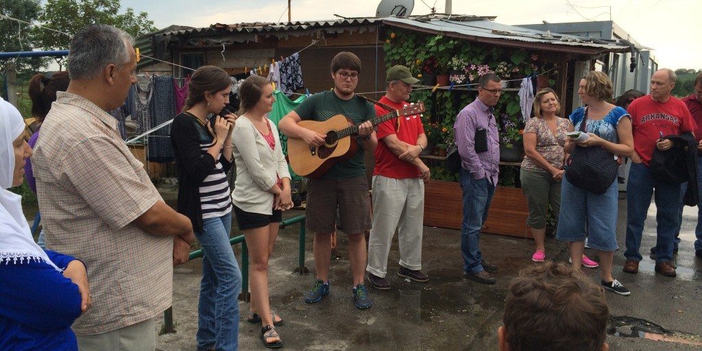It was raining very lightly when we arrived, and we stood around outside for a while, talking with the people. They were surprised when Caitlin counted for them in the Roma language, and even more surprised when the group from the USA sang an entire worship song in their language, with Daniel playing Nenad’s guitar while we sang.